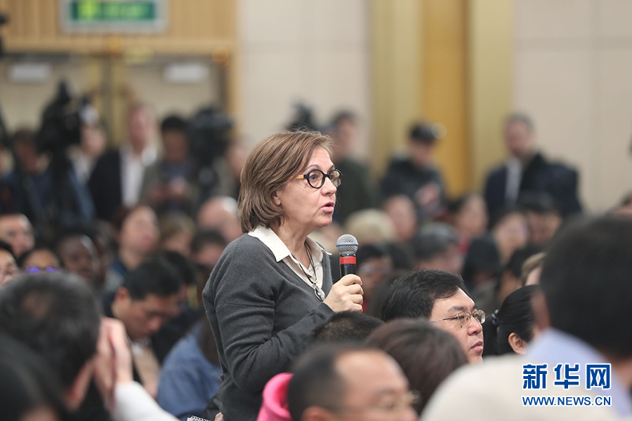 十三屆全國人大一次會議新聞中心于3月8日上午10時在梅地亞中心多功能廳舉行記者會,邀請外交部部長王毅就“中國外交政策和對外關系”回答中外記者提問。圖為法蘭西廣播公司記者提問。新華網/中國政府網陳杰 攝