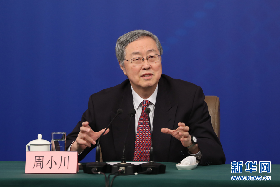 十三屆全國人大一次會議新聞中心3月9日在梅地亞中心多功能廳舉行記者會,邀請中國人民銀行行長周小川,副行長易綱,副行長、國家外匯管理局局長潘功勝就“金融改革與發展”相關問題回答中外記者提問。圖為周小川回答記者提問。新華網/中國政府網 陳杰 攝