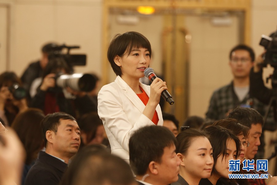 十三屆全國人大一次會議新聞中心3月9日在梅地亞中心多功能廳舉行記者會,邀請中國人民銀行行長周小川,副行長易綱,副行長、國家外匯管理局局長潘功勝就“金融改革與發(fā)展”相關問題回答中外記者提問。圖為中央電視臺記者提問。新華網(wǎng)/中國政府網(wǎng) 陳杰 攝