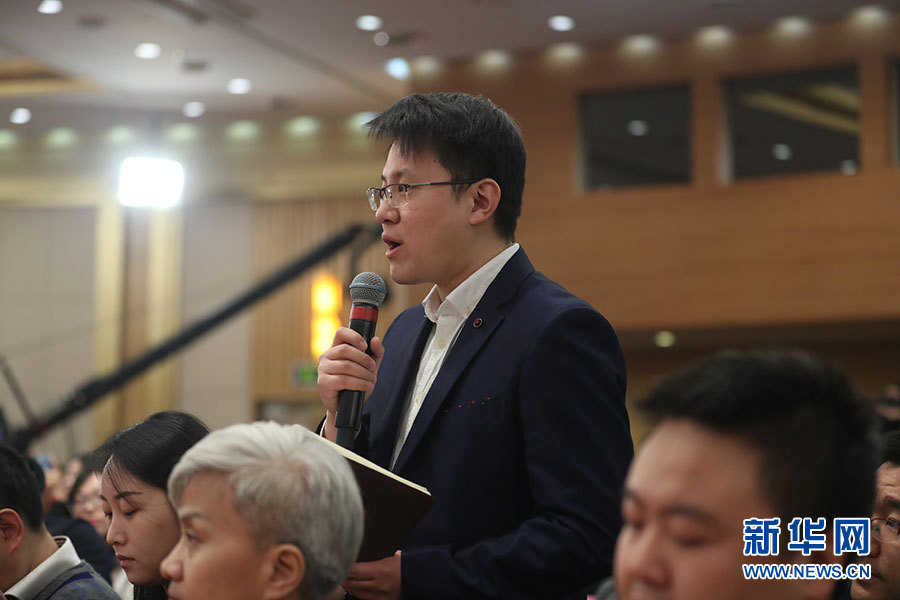 3月10日8時45分,全國政協十三屆一次會議將在梅地亞中心多功能廳舉行記者會,邀請5位全國政協委員就“提高保障和改善民生水平”回答記者提問。圖為人民日報記者提問。新華網/中國政府網?翟子赫 攝