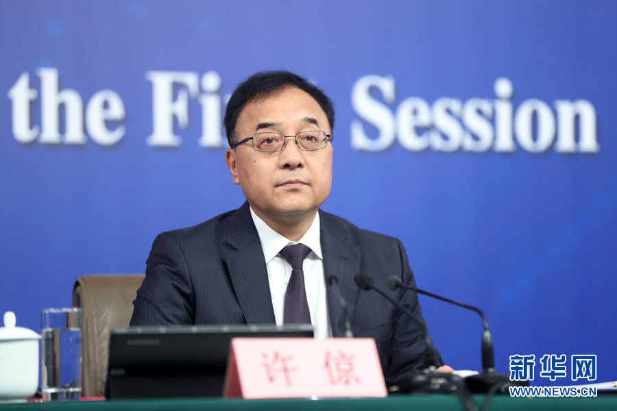 十三屆全國(guó)人大一次會(huì)議新聞中心于10日上午10時(shí)45分在梅地亞中心多功能廳舉行記者會(huì),邀請(qǐng)科技部部長(zhǎng)萬鋼、政策法規(guī)與監(jiān)督司司長(zhǎng)賀德方、創(chuàng)新發(fā)展司司長(zhǎng)許倞就“加快建設(shè)創(chuàng)新型國(guó)家”相關(guān)問題回答中外記者提問。圖為科技部創(chuàng)新發(fā)展司司長(zhǎng)許倞。新華網(wǎng)/中國(guó)政府網(wǎng) 翟子赫 攝