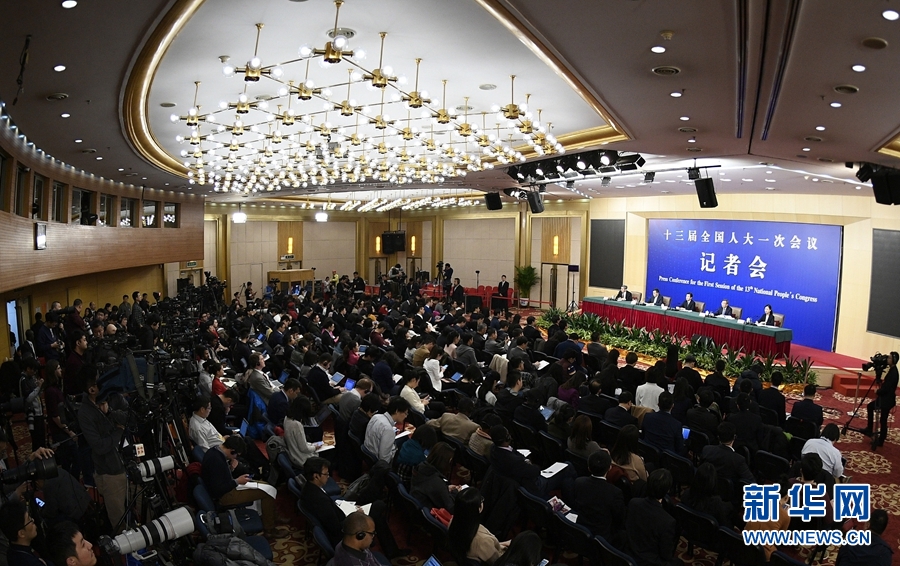 3月11日,十三屆全國人大一次會議新聞中心舉行記者會,邀請商務部部長鐘山、副部長兼國際貿易談判副代表王受文、副部長錢克明就“推動形成全面開放新格局推動商務事業高質量發展”相關問題回答中外記者提問。 新華社記者 王鵬 攝