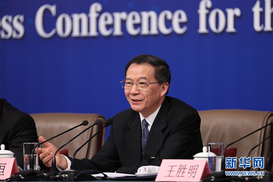 3月12日,十三屆全國人大一次會議新聞中心在梅地亞中心多功能廳舉行記者會,邀請十二屆全國人大內(nèi)司委副主任委員王勝明、財經(jīng)委副主任委員烏日圖、教科文衛(wèi)委副主任委員吳恒、環(huán)資委委員呂彩霞,全國人大常委會法工委副主任王超英、副主任許安標就“人大立法工作”相關(guān)問題回答中外記者提問。圖為教科文衛(wèi)委副主任委員吳恒回答記者提問。新華網(wǎng)/中國政府網(wǎng) 翟子赫 攝
