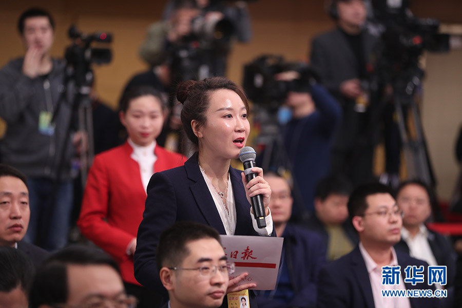 3月12日,十三屆全國人大一次會(huì)議新聞中心在梅地亞中心多功能廳舉行記者會(huì),邀請十二屆全國人大內(nèi)司委副主任委員王勝明、財(cái)經(jīng)委副主任委員烏日圖、教科文衛(wèi)委副主任委員吳恒、環(huán)資委委員呂彩霞,全國人大常委會(huì)法工委副主任王超英、副主任許安標(biāo)就“人大立法工作”相關(guān)問題回答中外記者提問。圖為檢察日報(bào)記者提問。新華網(wǎng)/中國政府網(wǎng) 翟子赫 攝