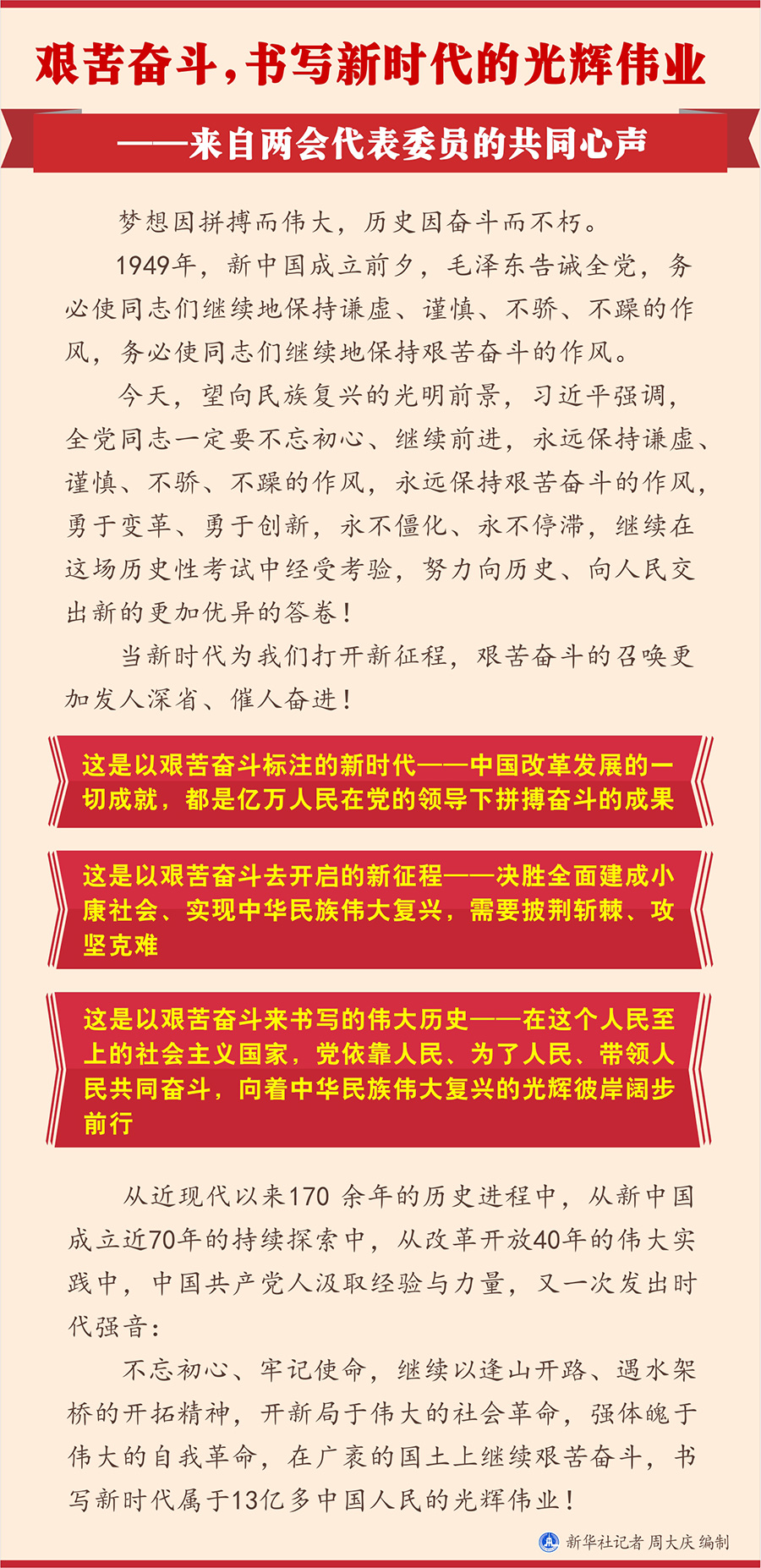 艱苦奮斗,書寫新時代的光輝偉業(yè)——來自兩會代表委員的共同心聲