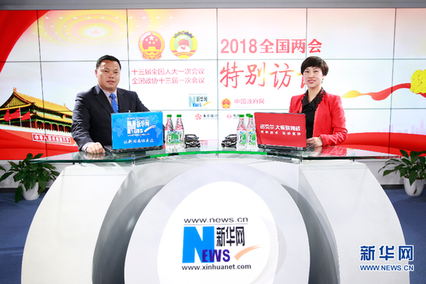 圖為全國(guó)人大代表、河南省平頂山市寶豐縣大黃村黨支部書記馬豹子做客新華網(wǎng)2018全國(guó)兩會(huì)特別訪談 新華網(wǎng) 范作言 攝