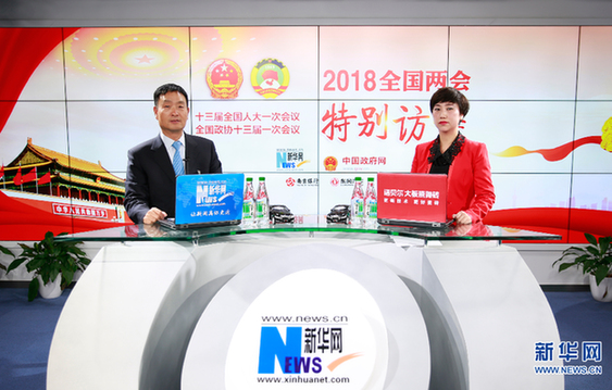 圖為全國(guó)人大代表、河南省輝縣市張村鄉(xiāng)裴寨村黨支部書(shū)記裴春亮做客新華網(wǎng)2018全國(guó)兩會(huì)特別訪(fǎng)談 新華網(wǎng) 范作言 攝