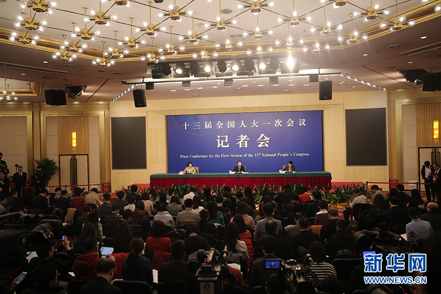 十三屆全國人大一次會議新聞中心于3月17日15時在梅地亞中心多功能廳舉行記者會,邀請環保部部長李干杰就“打好污染防治攻堅戰”相關問題回答中外記者提問。圖為記者會現場。新華網/中國政府網 陳杰 攝