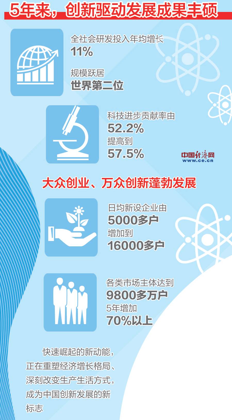 這5年,創(chuàng)新驅(qū)動發(fā)展成果豐碩。全社會研發(fā)投入年均增長11%,規(guī)模躍居世界第二位;科技進步貢獻率提高了5.3個百分點;載人航天、深海探測、量子通信、大飛機等重大創(chuàng)新成果不斷涌現(xiàn);高鐵網(wǎng)絡(luò)、電子商務(wù)、移動支付、共享經(jīng)濟等引領(lǐng)世界潮流……這一切,都源于我們實施的創(chuàng)新驅(qū)動發(fā)展戰(zhàn)略。在今年兩會上,代表委員圍繞“創(chuàng)新”這個關(guān)鍵詞,有講不完的話題。