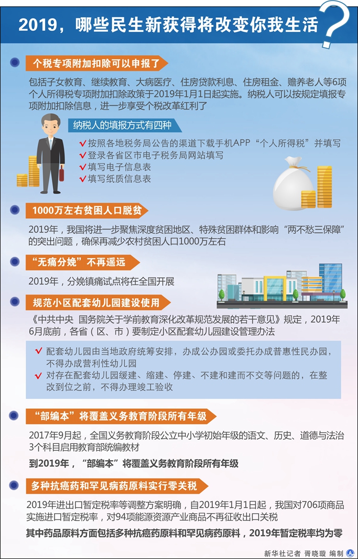 告別2018,迎來2019。新的一年,個稅改革紅利進一步釋放,更多貧困人口將實現(xiàn)脫貧,生娃、入托、上學(xué)、用藥等方方面面都將發(fā)生深刻變化。2019,哪些民生新獲得將改變你我生活?