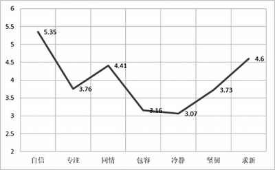 調(diào)查采用6分制等級(jí)問(wèn)卷,結(jié)果以平均分、標(biāo)準(zhǔn)分表示各心理品質(zhì)的發(fā)展水平,以1-6分代表從低到高的發(fā)展趨勢(shì),6分為滿分。
