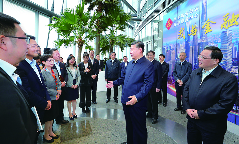 2018年11月6日至7日,中共中央總書記、國(guó)家主席、中央軍委主席習(xí)近平在上??疾?。這是6日上午,習(xí)近平在上海中心大廈22層的陸家嘴金融城黨建服務(wù)中心,同正在聯(lián)合開展主題黨日活動(dòng)的企業(yè)黨員親切交談。 新華社記者 謝環(huán)馳/攝