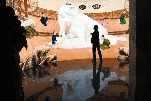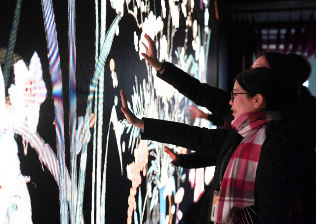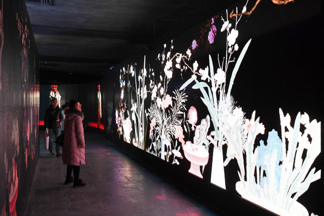 這是1月21日拍攝的數字沉浸體驗展“花開歲朝”部分。