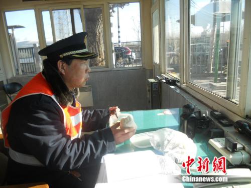 58歲的道口工張連弟正在在道口值守。中新網記者 張尼 攝