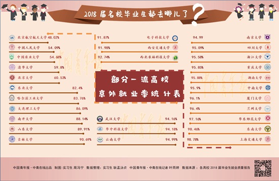 一直以來,“北上廣”是高校畢業(yè)生心中的“白月光”,即使沒戶口,去一線城市闖一闖也是不少大學生的共識。然而記者梳理后發(fā)現(xiàn),一流高校畢業(yè)生的京外就業(yè)率普遍超過50%。