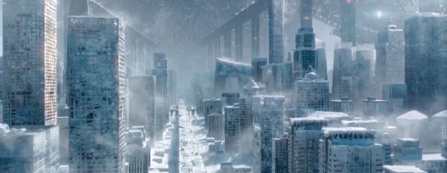 在預告片里,災難來臨之際,未來的北京和上海成為冰封的世界,東方明珠塔被凍結在了皚皚冰原之中。影評人不僅驚嘆于高水平的特效制作,更感慨中國情境下的標志性元素和敘事風格。