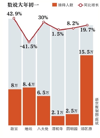 昨天是農歷大年初一,“春節”假日第二天,記者從北京市假日辦獲悉,當日,全市重點監測的146家旅游景區共接待游客112.63萬人次,其中故宮博物院共接待8萬人次,同比增長42.9%;廟會等各類民俗活動共接待40.1萬人次。市屬11家公園及園博館共迎來游客25萬人次,同比去年增長11%。各公園開展了傳統園林賀歲、鮮花廟會及非遺技藝、經典展陳等不同形式的游園活動,給來園市民游客拜大年、送福氣。