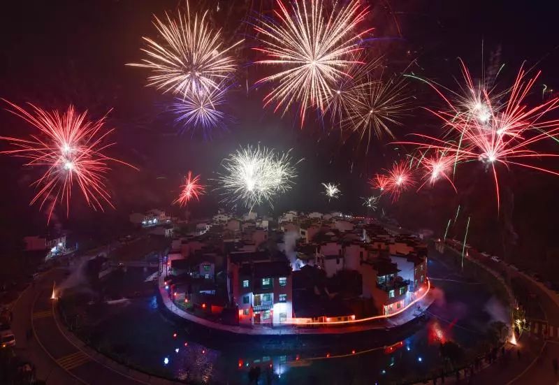 2019-01-18,江西省上饒市婺源縣。菊徑村村民舞板凳龍迎新春,煙花點亮了山村。作者:敦煌