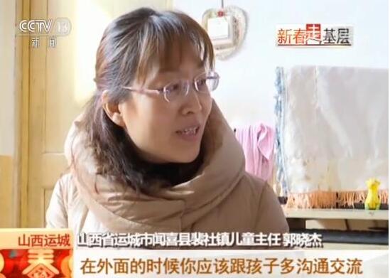 我國從2016年開始對全國留守兒童進(jìn)行摸底調(diào)查,繼而開始推動基層兒童工作隊(duì)伍建設(shè),目前全國已經(jīng)有62.5萬名村居兒童主任,在兜底保障近700萬留守兒童的生活。春節(jié)前,新春走基層的記者來到山西省運(yùn)城市聞喜縣,這里是我國最早設(shè)立兒童主任的試點(diǎn)地區(qū),郭曉杰就是一位守護(hù)100多名留守兒童的村居兒童主任。