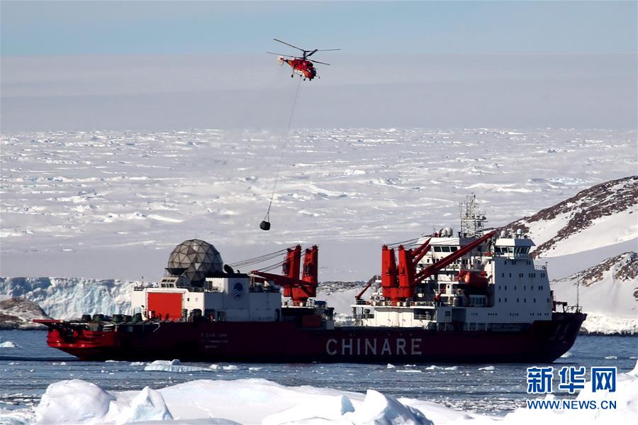 新華社南極中山站2月9日電(記者 劉詩平)“雪龍”號極地考察破冰船9日抵達南極中山站,并于當天開始用船載直升機“雪鷹12”向中山站吊運燃油。