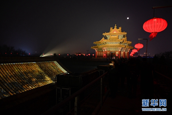 2月19日晚拍攝的故宮城墻。新華社記者 金良快 攝