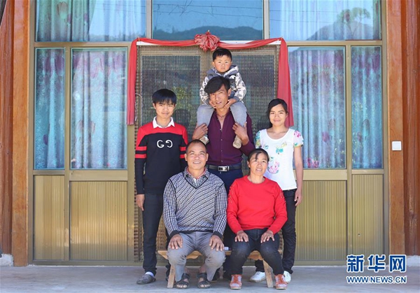 云南省施甸縣由旺鎮楊家社區村民蔣朋玉(前排左)一家的“全家福”(2月8日攝)。新華社發(楊董清 攝)