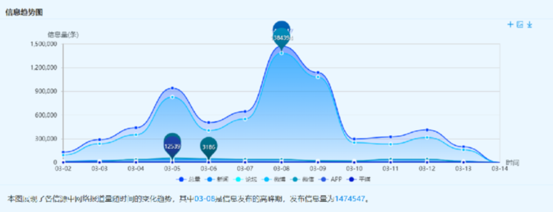 新華睿思大數(shù)據(jù)通過監(jiān)測新聞網(wǎng)站、論壇、微信、微博、APP、平媒6個(gè)信源,分析結(jié)果顯示,截至目前,全國兩會開幕以來,關(guān)于健康中國的話題共6788791個(gè)。