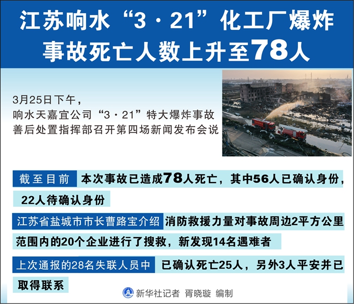 江蘇響水“3·21”化工廠爆炸事故死亡人數上升至78人-新華網