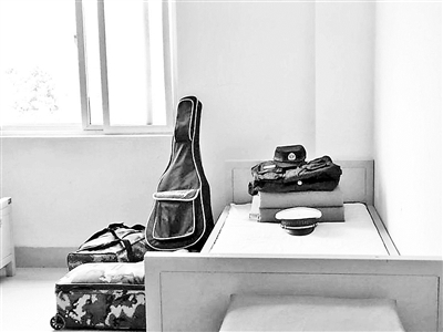 王富泉他們替大家打包好行李,打算過兩天郵回每個人的老家。老班長孔祥磊的包裹背后豎立著一把吉他,是他平常最大的愛好。指導員胡顯祿說,孔祥磊彈得一手好吉他,就是性格比較內向,所以一般不自己唱歌,除非有戰友答應與他合唱,“印象里他愛唱《朋友》,經常給大家伴奏。”