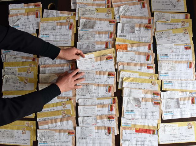 3月20日,張景憲將新一批寫好的信件投到信箱里準備寄出。