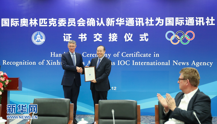 新華社接受國(guó)際奧委會(huì)國(guó)際通訊社證書
