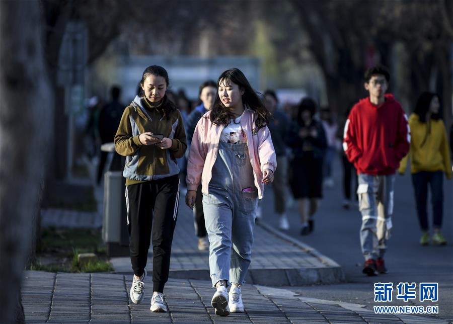新疆石河子大學的學生走在校園內(nèi)(4月10日攝)。新華社記者 王菲