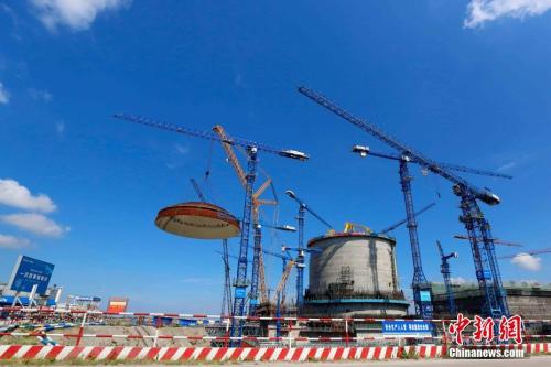 資料圖:圖為中國自主三代核電技術“華龍一號”吊裝穹頂。中新社發 黃穗芳 攝