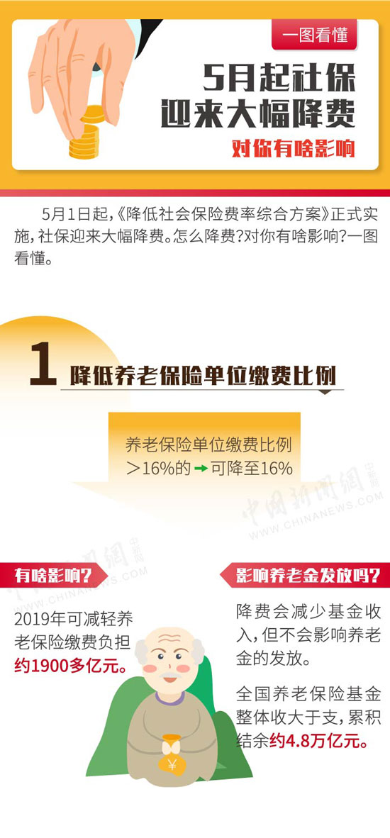 繼4月1日起增值稅萬(wàn)億大減稅后,社保5月起迎來(lái)大幅降費(fèi),這是今年更大規(guī)模減稅降費(fèi)端上的另一道“硬菜”。