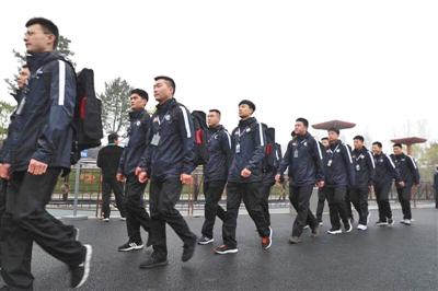 在世園會內列隊“巡邏”的快遞小哥??爝f公司世園會站點供圖