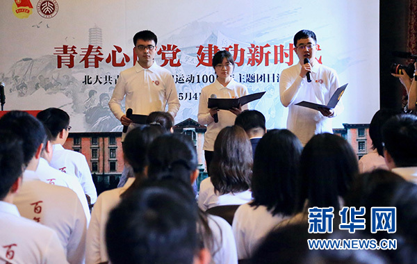 新華網(wǎng)北京5月4日電(潘子荻)“青春心向黨 建功新時代”北大共青團紀念五四運動100周年主題團日活動4日在北京大學紅樓舉行。