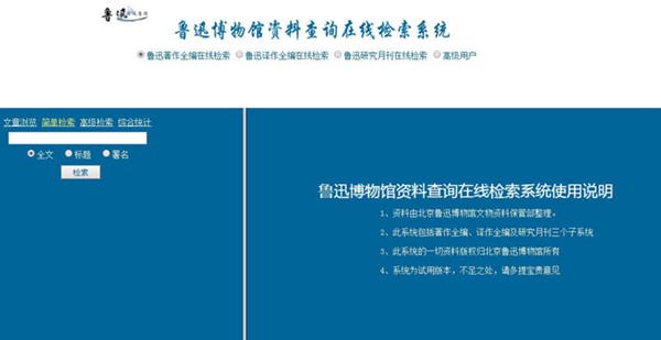 澎湃新聞記者查詢發(fā)現(xiàn),網(wǎng)友提到的“魯迅說過的話”檢索系統(tǒng)其實正確名稱為“魯迅博物館資料查詢在線檢測系統(tǒng)”(網(wǎng)址:http://cx.luxunmuseum.com.cn/)。根據(jù)官方介紹,該系統(tǒng)由北京魯迅博物館文物資料保管部整理,包括魯迅著作全編、譯作全編及研究月刊三個子系統(tǒng),而系統(tǒng)一切資料版權(quán)歸北京魯迅博物館所有。