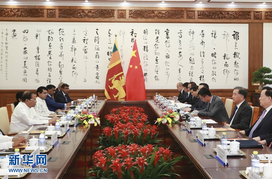 5月14日,全國政協(xié)主席汪洋在北京釣魚臺國賓館會見斯里蘭卡總統(tǒng)西里塞納。 新華社記者 丁林 攝