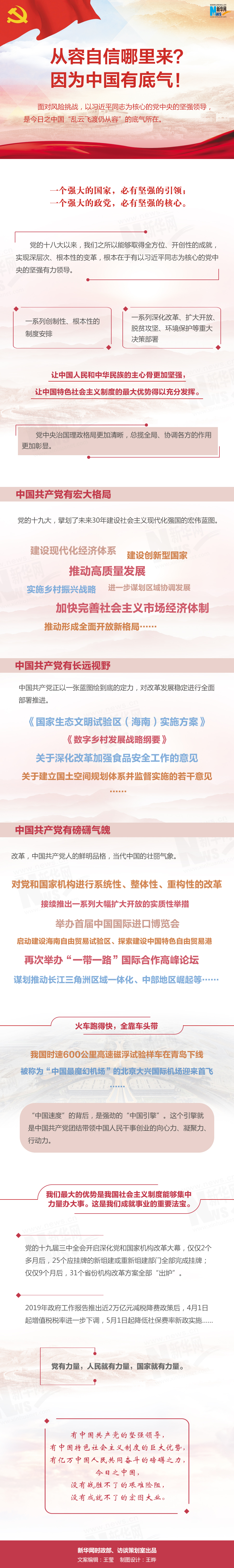 滄海橫流顯砥柱,萬山磅礴看主峰。面對風險挑戰,以習近平同志為核心的黨中央的堅強領導,是今日之中國“亂云飛渡仍從容”的底氣所在。