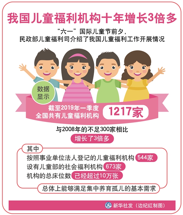 新華社北京5月31日電(記者羅爭(zhēng)光)“六一”國(guó)際兒童節(jié)前夕,民政部?jī)和@窘榻B了我國(guó)兒童福利工作開(kāi)展情況。數(shù)據(jù)顯示,截至今年一季度,全國(guó)共有兒童福利機(jī)構(gòu)1217家,與2008年的不足300家相比,增長(zhǎng)了3倍多。