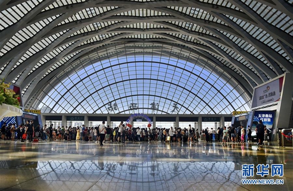 6月9日,旅客在天津西站候車大廳排隊等候。據悉,全國鐵路9日迎來端午小長假返程客流高峰,預計發送旅客1370萬人次,加開旅客列車889列。新華社發(楊寶森 攝)