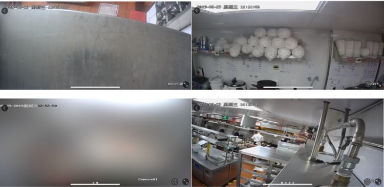 記者發現,有的餐廳后廚既不透明也無監控,有的安裝了監控卻“失靈”。在“牧之初心”餐廳,其后廚監控畫面多數為黑屏,有的畫面顯示“無網絡視頻”。記者隨后對多家飯店走訪發現,屏幕“失靈”者不在少數,解釋原因多為“壞了”“網絡不好”。