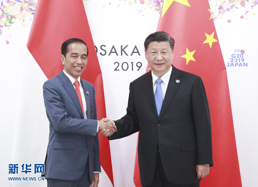 6月28日,國家主席習近平在大阪會見印度尼西亞總統佐科。 新華社記者 龐興雷 攝