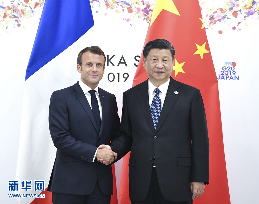 6月29日,國家主席習(xí)近平在大阪會見法國總統(tǒng)馬克龍。 新華社記者 燕雁 攝