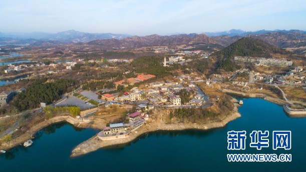 這是?3月22日在河北省石家莊市平山縣航拍的西柏坡(無人機拍攝)。新華社發(蒲東峰 攝)