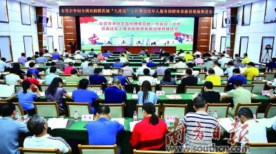 東莞市爭(zhēng)創(chuàng)全國(guó)雙擁模范城“九連冠”工作暨退役軍人服務(wù)保障體系建設(shè)現(xiàn)場(chǎng)推進(jìn)會(huì)在黃江鎮(zhèn)召開。記者 孫俊杰 通訊員 李鄂 攝