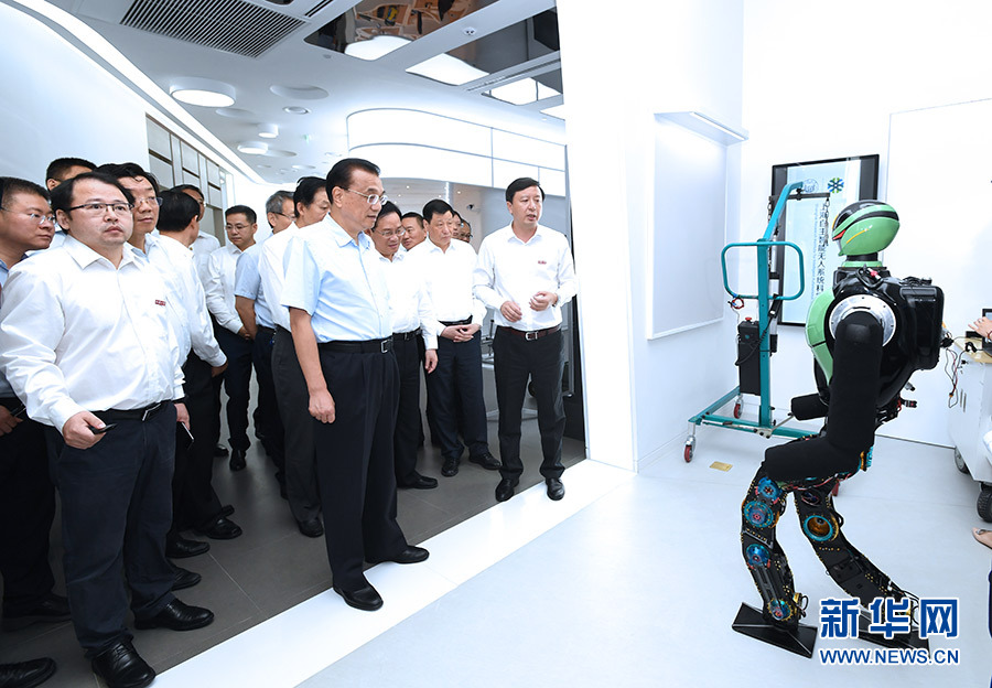 7月22日至23日,中共中央政治局常委、國務(wù)院總理李克強在上海考察。這是7月23日,李克強在上海張江人工智能島察看3D視覺遠程醫(yī)療、智能神經(jīng)仿生、智能無人系列技術(shù)等創(chuàng)新成果。 新華社記者 饒愛民 攝