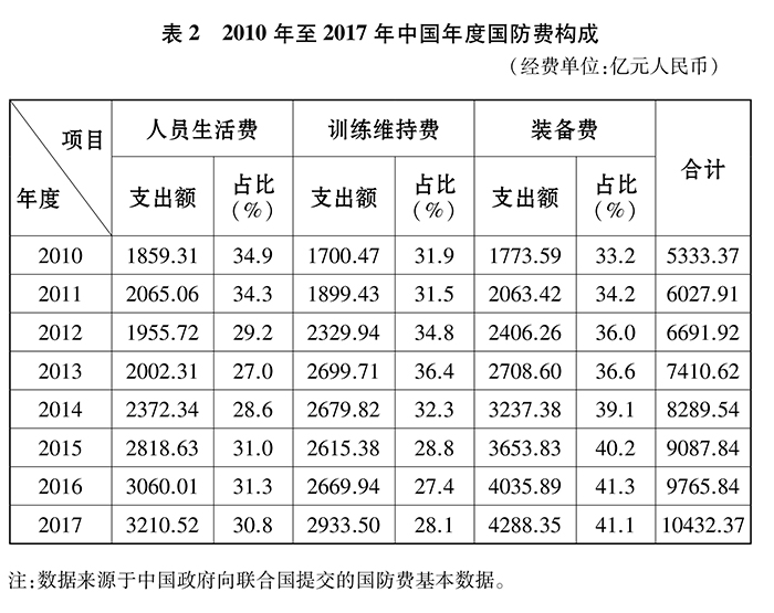 中國堅持執行國防費報告和公布制度。1978年以來,中國政府每年向全國人大提交財政預算報告,并對外公布年度國防費預算總額。1995年,中國政府發布《中國的軍備控制與裁軍》白皮書,向世界公布國防費情況。2007年以來,中國參加聯合國軍費透明制度,每年向聯合國提交上一財政年度國防費基本數據,按現役部隊、預備役部隊、民兵等類別,提交人員生活費、訓練維持費、裝備費三大類開支數額和國防費總額,并說明中國國防費的主要用途和占國內生產總值比重。
