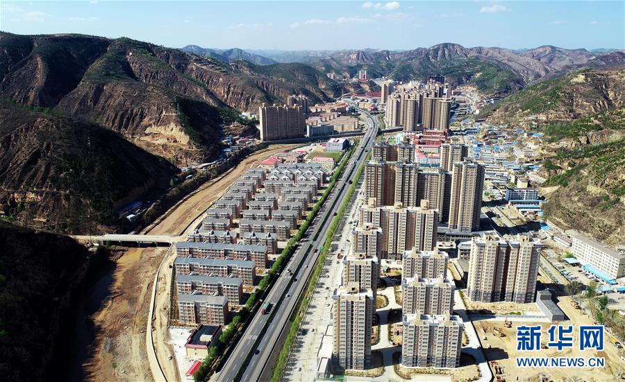 陜西延安安塞區的惠澤園移民搬遷安置小區(4月23日無人機拍攝)。新華社記者 劉瀟 攝
