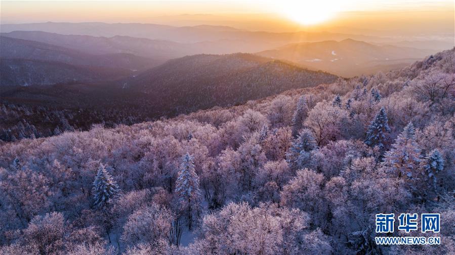 這是在長白山林區拍攝的霧凇景色(2018年1月13日無人機拍攝)。新華社記者 許暢 攝